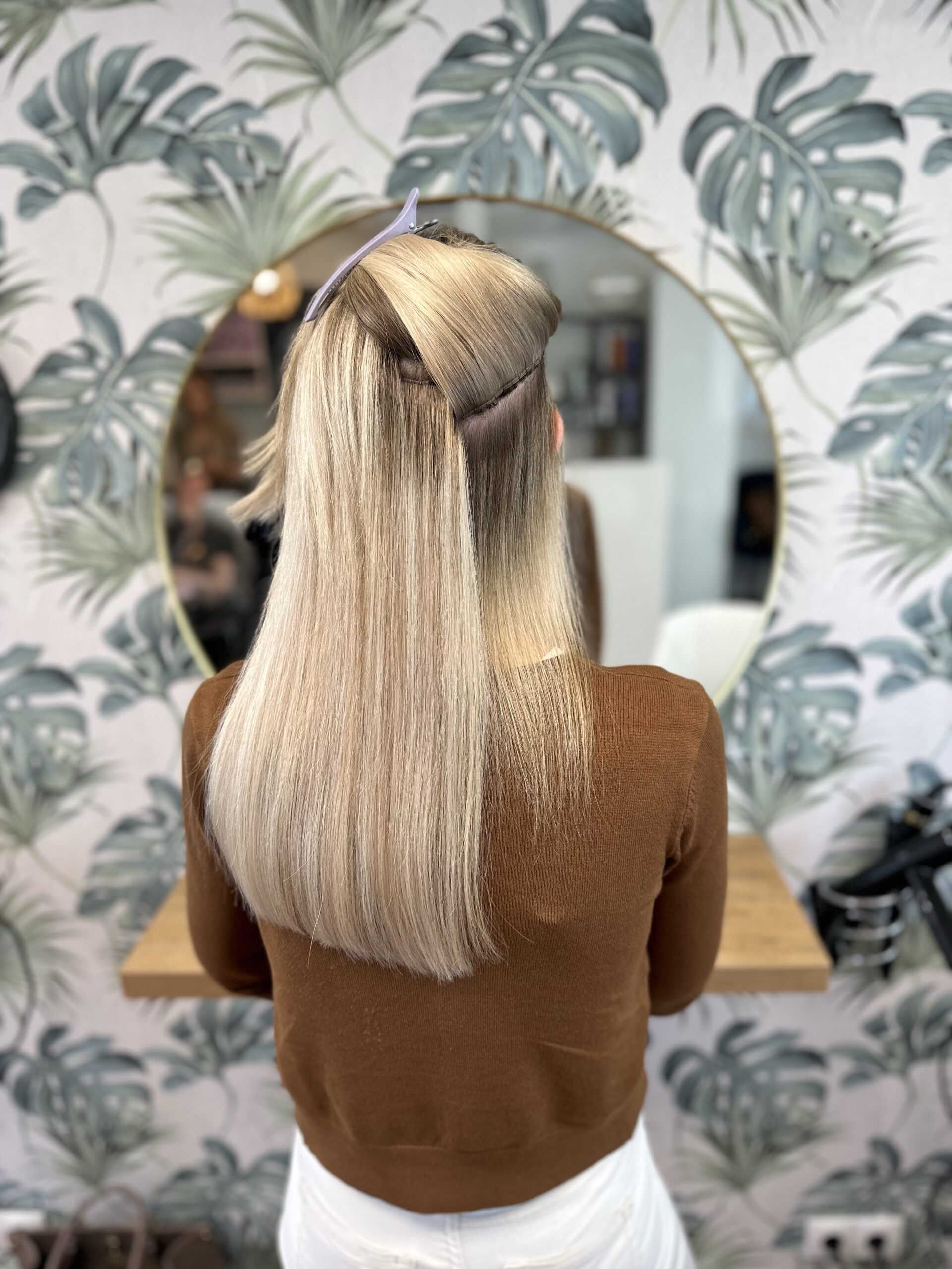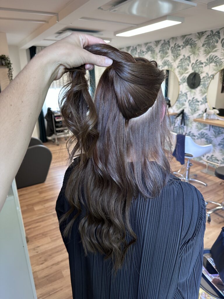 Daher bieten wir eine schonende Lösung für all diese Probleme. Im Blondbereich kann man beispielsweise die Farbe in Längen und Spitzen ausgleichen. Stylings haben eine viel bessere Haltbarkeit. Das Eigenhaar kann sich in der Tragezeit sogar wieder Erholen.